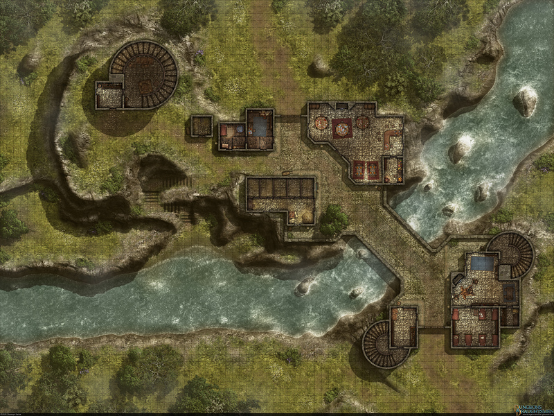 The “River Outpost” contains an inn, stables, barracks, towers (including upper levels) as well as the outpost commander’s quarters.